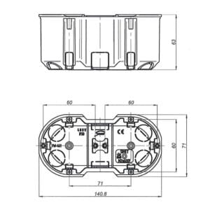 Caja de conexiones de montaje empotrado multipolar 2×60 mm profundidad