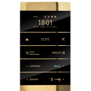 Su frontal está fabricado en aluminio macizo de alta calidad e integra pantallas de alta resolución con tecnología TFT IPS resistente al envejecimiento. Los displays de las teclas ofrecen una resolución de 480 x 60 píxeles, y el equipo incorpora además una pantalla adicional de gran formato para mostrar información ampliada como hora, fecha, temperaturas, estados del sistema y mensajes personalizados.