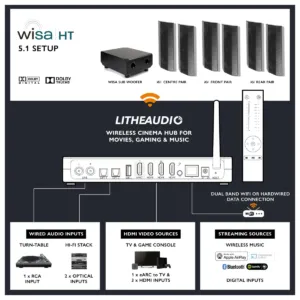 Kit de cine con sonido envolvente inalámbrico 5.1 – Con WiSA Cinema Hub