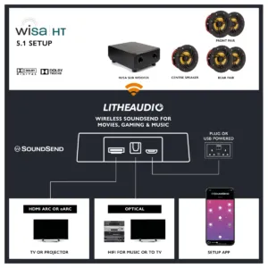 Utilizando la tecnología WiSA HT de última generación, este sistema ofrece audio multicanal de alta definición de forma inalámbrica, lo que garantiza una conexión perfecta sin comprometer la calidad del sonido.