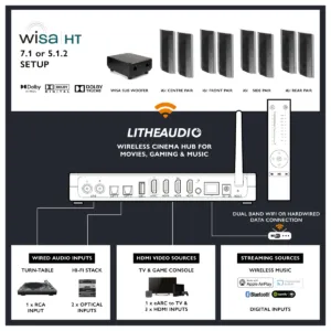 Kit de cine con sonido envolvente inalámbrico 7.1 – Con WiSA Cinema Hub