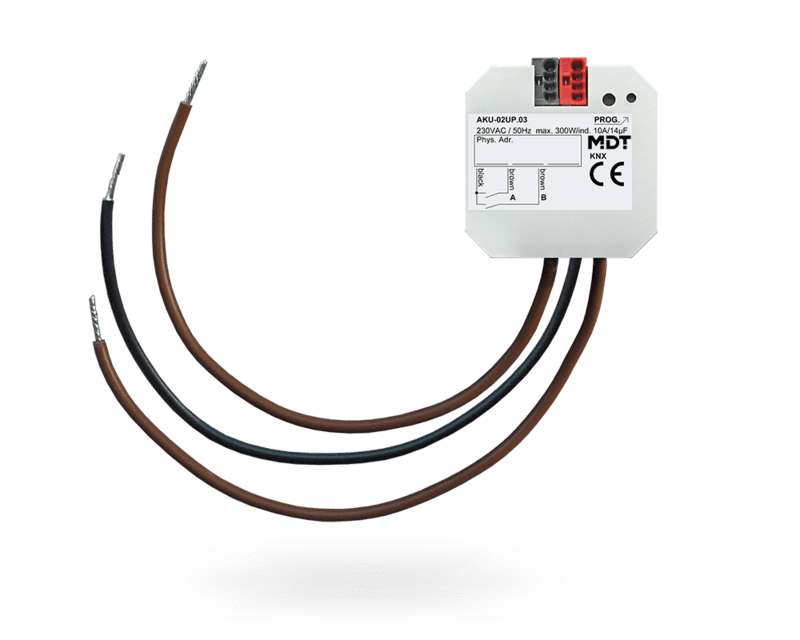 MDT KNX Actuador universal 2 salidas, 10 A, 230 V AC, 14 µF, 2ECG, empotrable