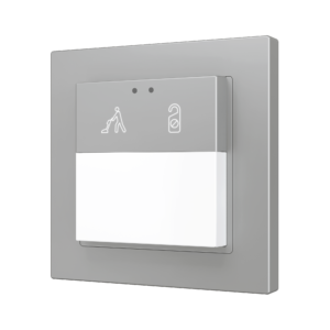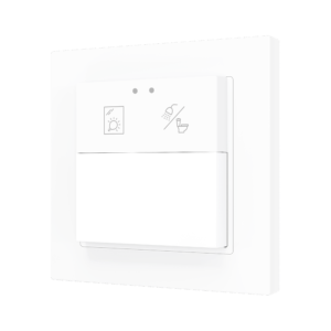 Detector de movimiento para instalación empotrada en pared en marco 55 x 55 mm sin (Presentia W0 v2), con uno (Presentia W1 v2) o dos (Presentia W2 v2) botones táctiles con iconos retroiluminados personalizables.