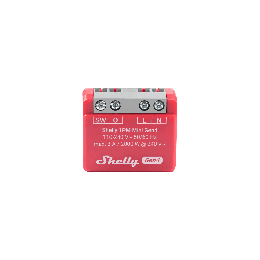 Un interruptor inteligente compacto con medición de potencia para controlar luces y pequeños electrodomésticos de hasta 8 A. Equipado con chip Shelly y soporte de conectividad multiprotocolo: Wi-Fi, Zigbee, Bluetooth, Matter.