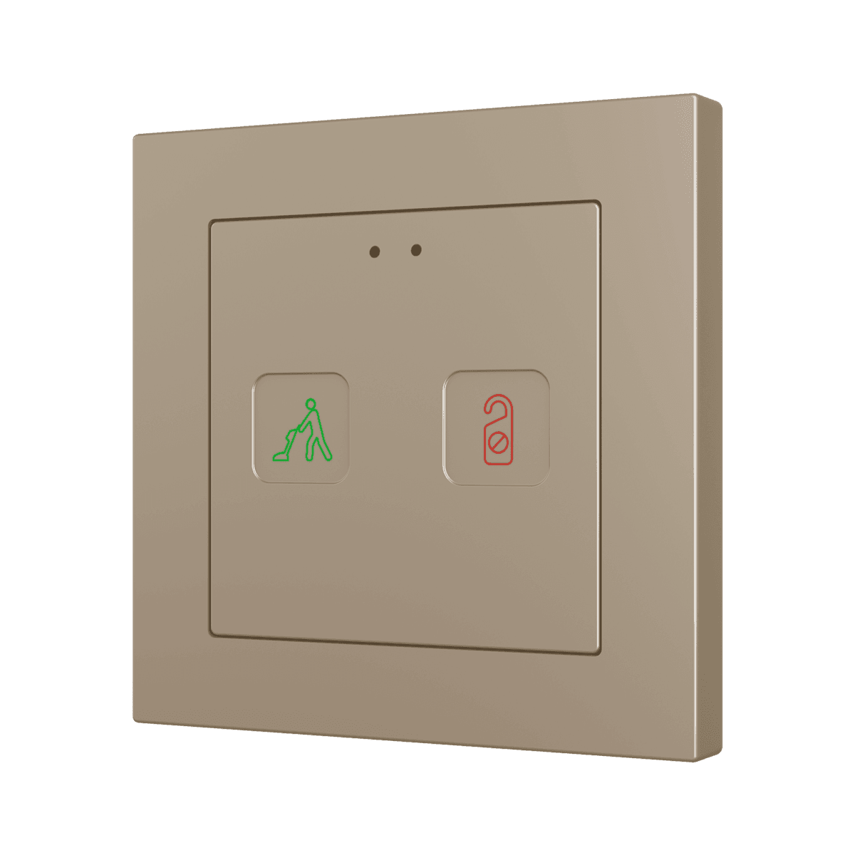 Saca el máximo partido con la instalación en pareja, ubicando un dispositivo dentro de la habitación para que el huésped seleccione entre No Molestar o Limpiar Habitación y un dispositivo indicador fuera de la habitación, que mostrará al personal de housekeeping el estado seleccionado por el huésped.
